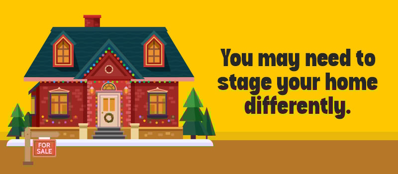 Make sure the holiday decorations do not overpower the space. If you’re selling around the holiday and have put up decorations, keep it simple. If you’re selling once the holidays are over, carefully consider your displays so your house won’t show wreaths and reindeers in the middle of January.